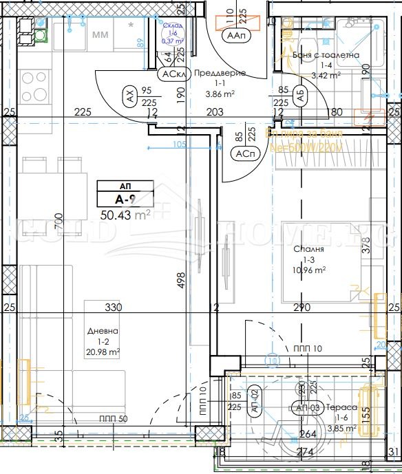 ⮚ Можем да предложим различни етажи и изложения. Двустайните апартаменти са проектирани от 59 кв.м до 70 кв.м.