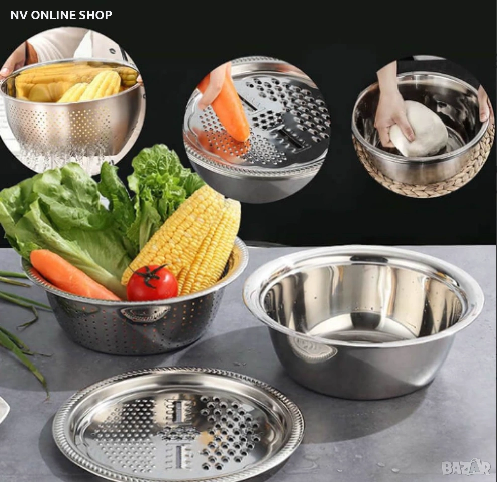 Многофункционално ренде 3в1 с купа за салата и съд за отцеждане → Обява 53177402