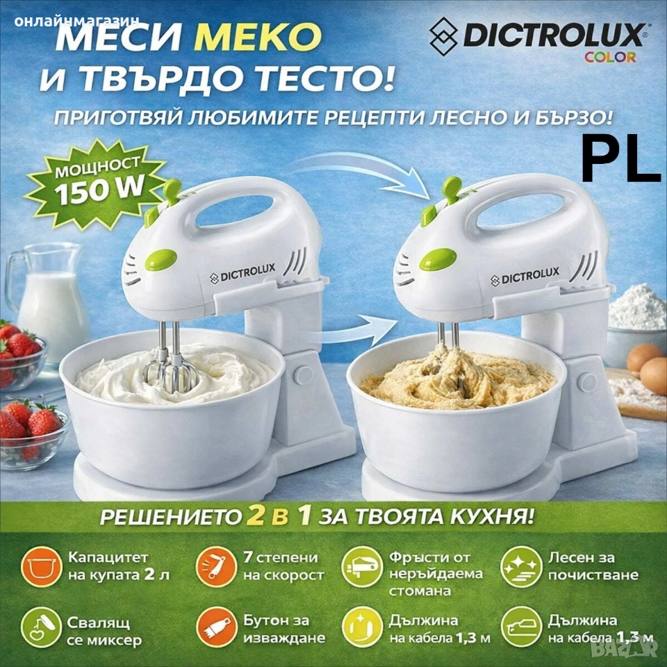 Промо комплект: Миксер Dictrolux 150W с купа 2L + 3 алпака тави за печене (28, 30, 32 см)