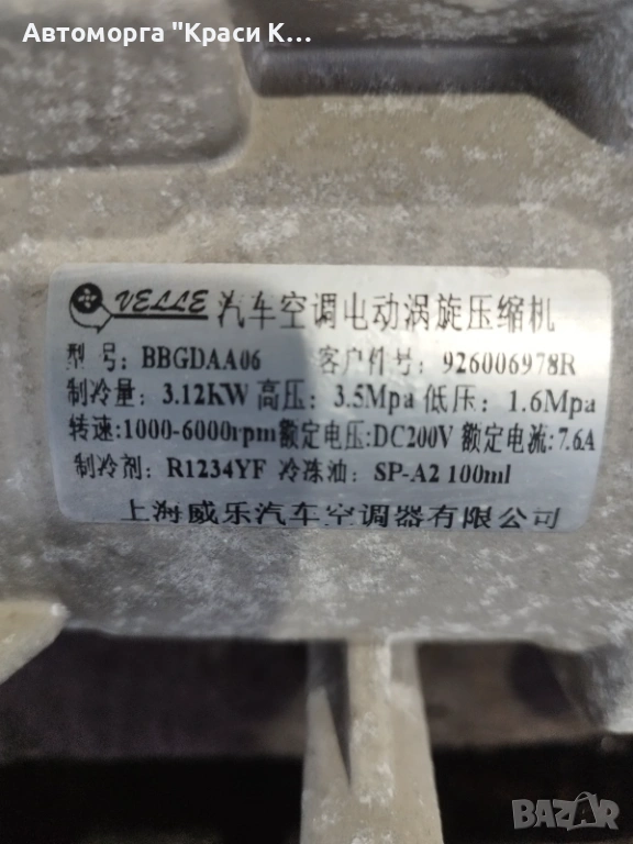 BBGDAA06 компресор Климатик за DACIA Spring electric 2023г в автоморга KRASI CAR, преди с. Кичево гр. Варна. ВСИЧКИ ЦЕНИ СА С ВКЛЮЧЕНО ДДС. ВСИЧКИ ЧАСТИ