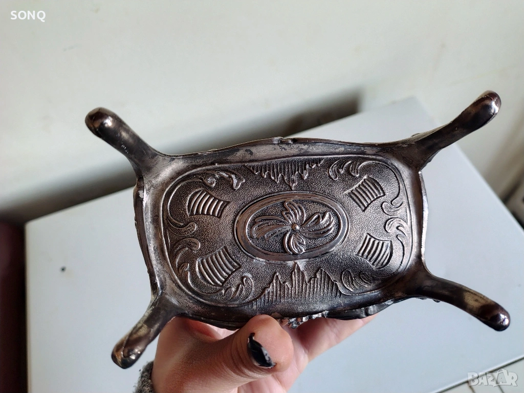 Прекрасна стара изработка със посребряване. Във нета има данни за нея както и ЦЕНИ. Само за ценители и Колекционери.