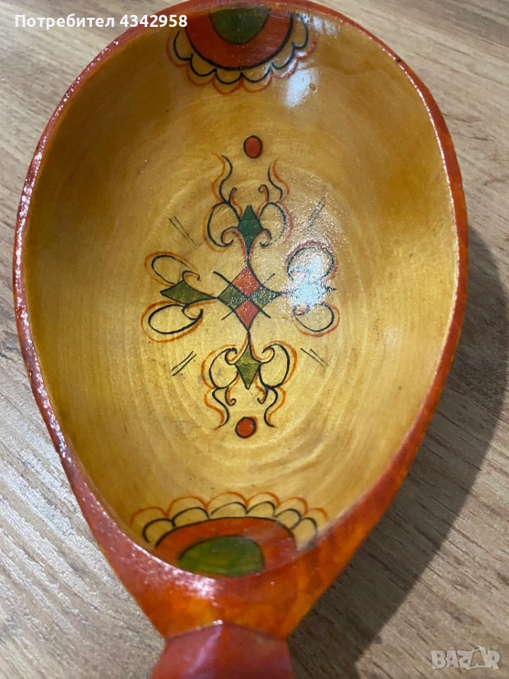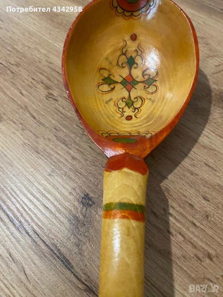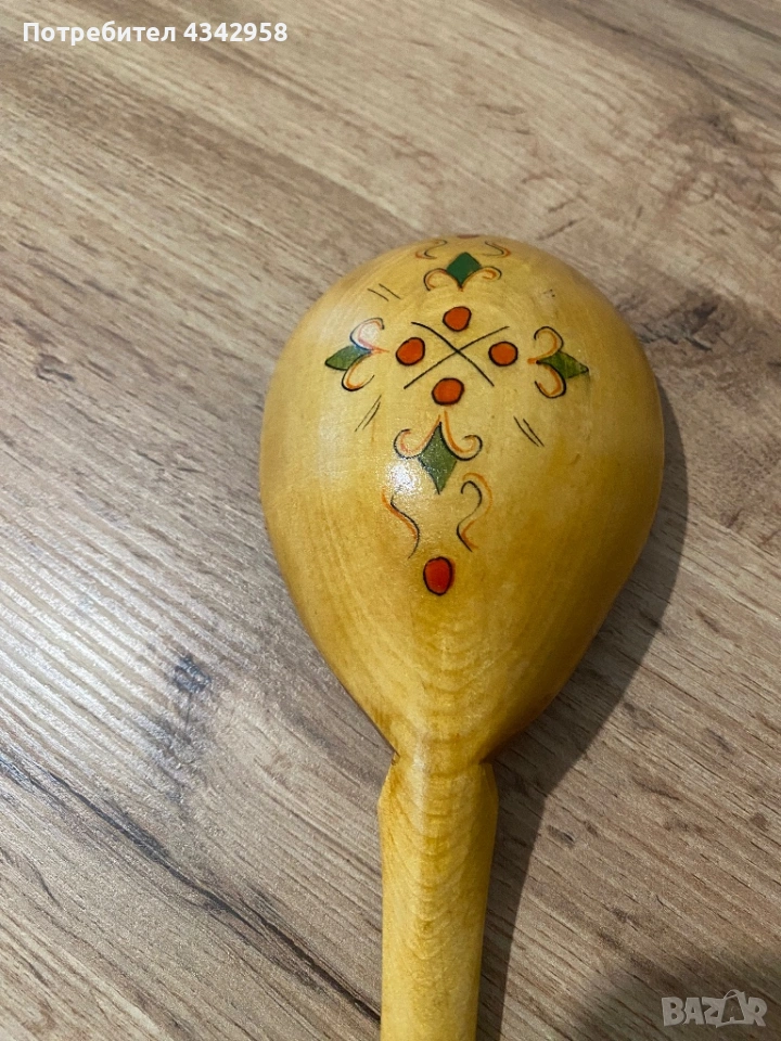 Винтидж дървена декоративна лъжица – ръчно рисувана .
