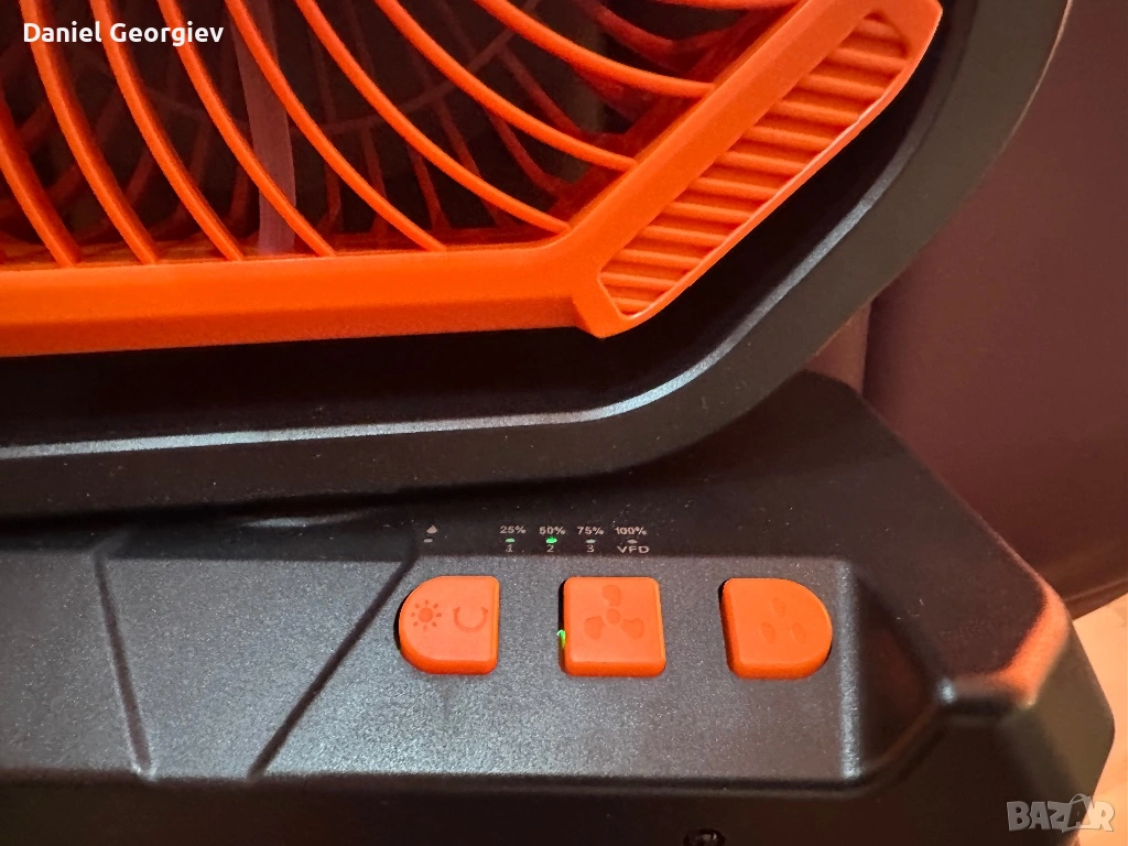 Дизайн: Вентилаторът може да се отделя от резервоара и да се окачва (има вградена кука за закачане в палатка).