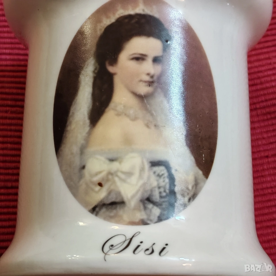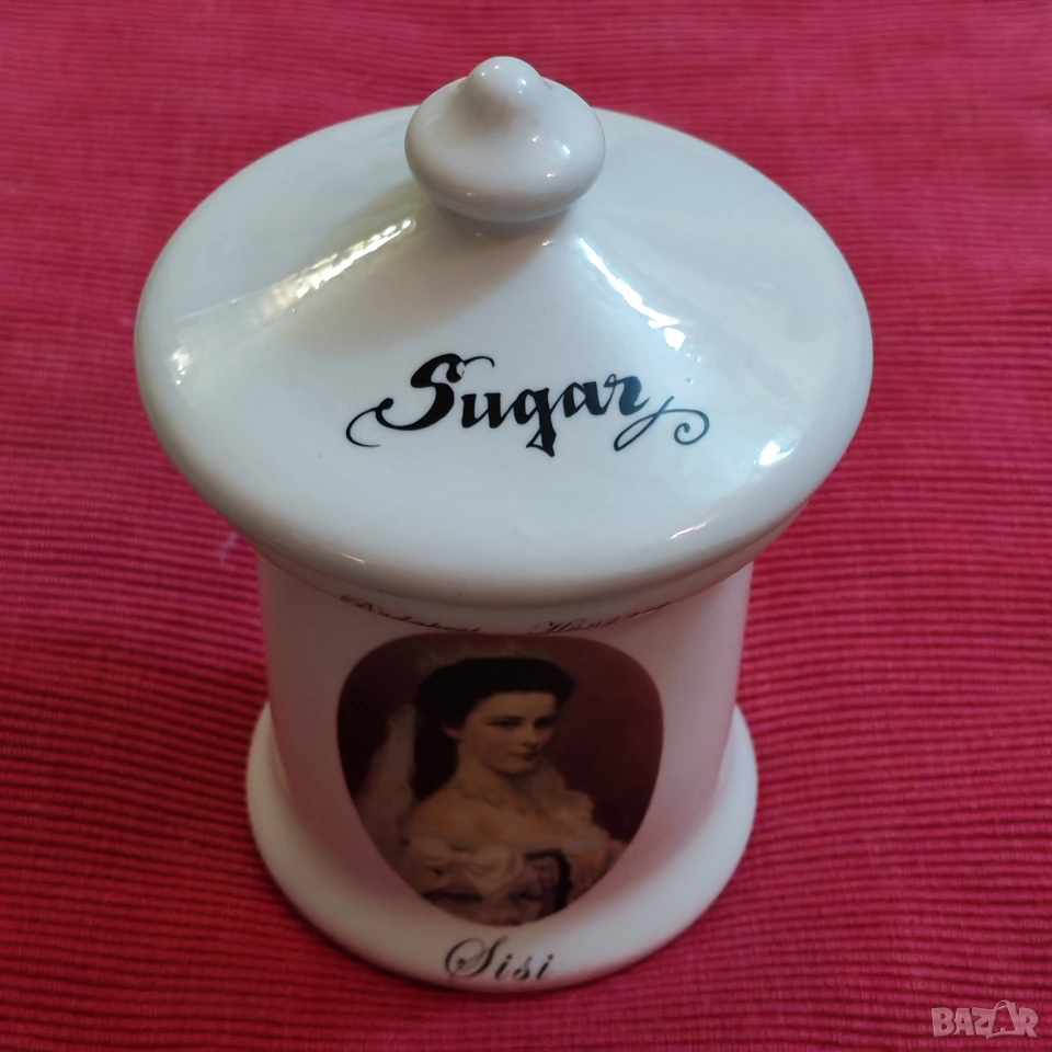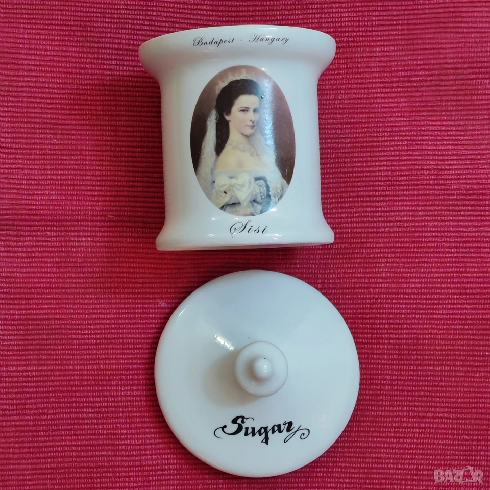 Винтидж порцеланова захарница от две части. Изображението е на Елизабет (Сиси) , императрица на Австрия и кралица на Унгария. Отлично състояние, няма забележки. Еконт, Спиди, лично предаване. Телефон за връзка 0885776829.