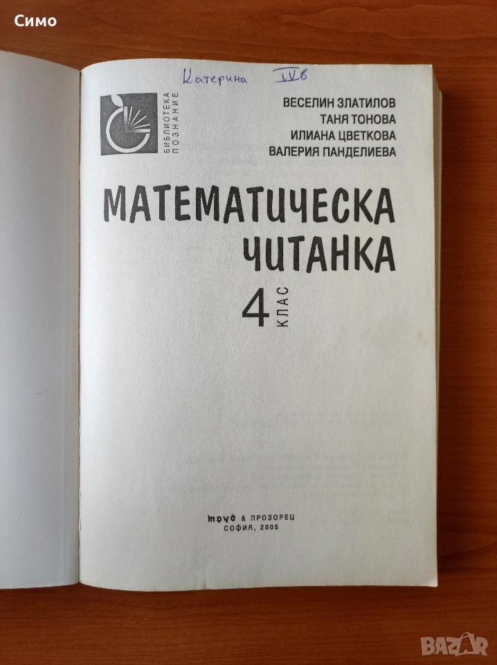Математическа читанка за 4. клас Веселин Златилов, Илиана Цветкова, Таня Тонова, Валерия Панделиева, снимка 1 - Ученически пособия, канцеларски материали - 53178230 Математическа читанка за 4. клас Веселин Златилов, Илиана Цветкова, Таня Тонова, Валерия Панделиева, снимка 2 - Ученически пособия, канцеларски материали - 53178230 Математическа читанка за 4. клас Веселин Златилов, Илиана Цветкова, Таня Тонова, Валерия Панделиева, снимка 3 - Ученически пособия, канцеларски материали - 53178230 Математическа читанка за 4. клас Веселин Златилов, Илиана Цветкова, Таня Тонова, Валерия Панделиева, снимка 4 - Ученически пособия, канцеларски материали - 53178230 1/4