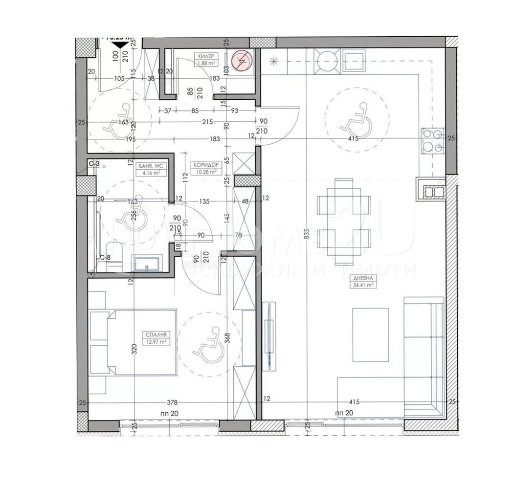 Представяме ви апартамент, състоящ се от дневна с кухненски бокс, спалня, баня с тоалетна, килер, коридор. Намира се в един от най - бързо развиващите се райони на Варна - Владиславово, където има всякакви комуникации. Възможност за покупка с жилищен кредит. В района има и други завършени сгради на инвеститора. За ваше улеснение прилагаме схема на разпределение. Ако имате интерес към този имот, обадете се сега и цитирайте следния код: 142935