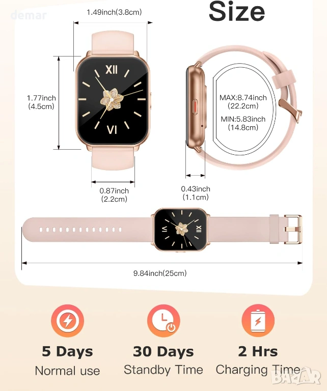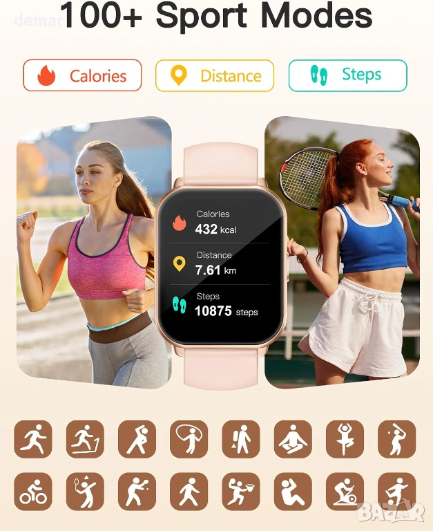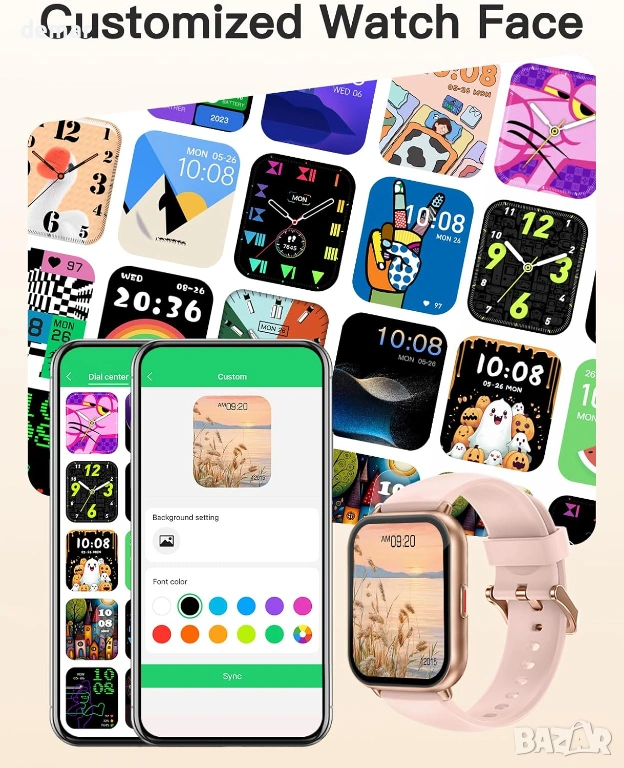 Cloudpoem 1.85" смарт часовник с приемане/осъществяване на повиквания за Android и iOS