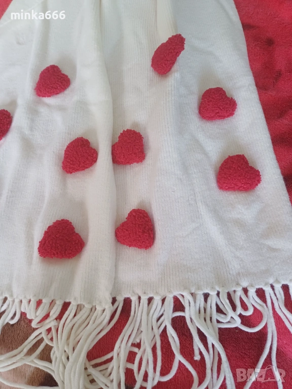 Плътно плетен шал със сърца.Чудесен подарък за Св.Валентин.