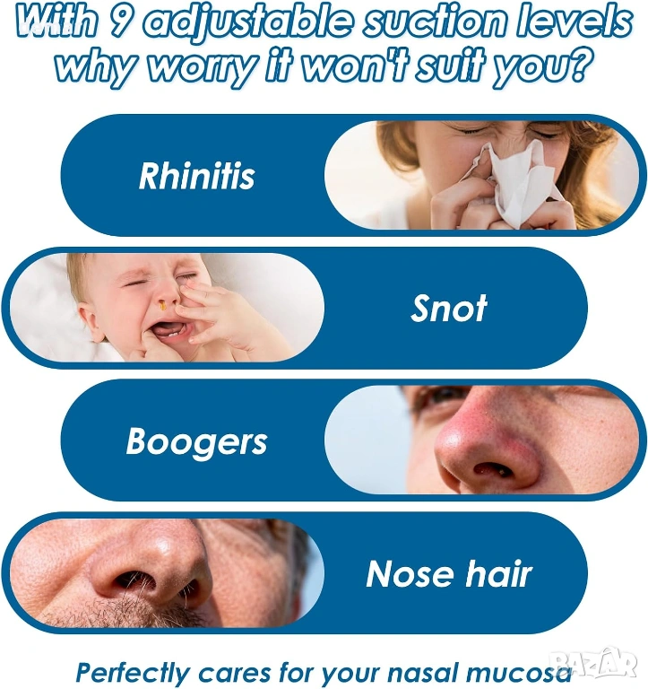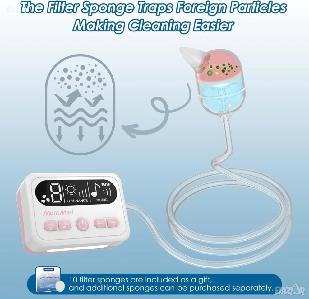 MOMMED Бебешки назален аспиратор, до 65kPa с 9 нива на засмукване