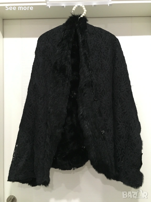 Палто от заешка кожа LAPIN с флорални мотиви, един размер! Нестандартно! На основата на дантелени цветя от заешка кожа! Закопчава се с кукички! За удобство има и джобове! Размерът е универсален! Не се скубе и не мирише!Дължина 66 см!Изпращам по Еконт и Спиди!