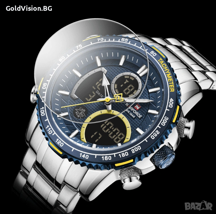NAVIFORCE SBE е мъжки часовник с комбиниран аналогово-цифров дисплей — съчетава класическа стрелкова визия с модерни цифрови функции. Стабилната конструкция и спортно-елегантният дизайн го правят подходящ както за ежедневието, така и за активен начин на живот. Това е модел, подходящ за мъже, които търсят универсален часовник: практичен, функционален и със смел, модерен облик.