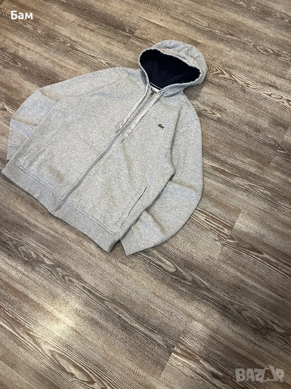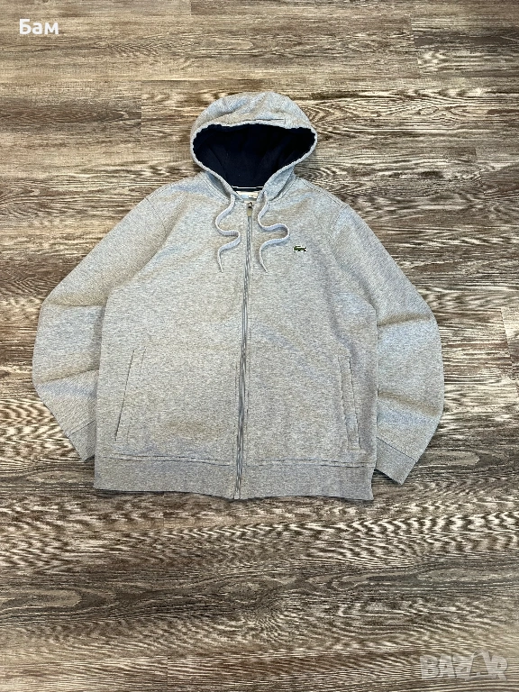 Оригинално мъжко горнище с качулка и цял цип Lacoste размер Л