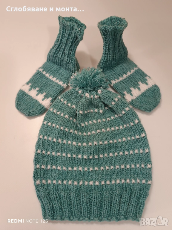 Ръчно плетен детски комплект – шапка и чорапи → Обява 53179246