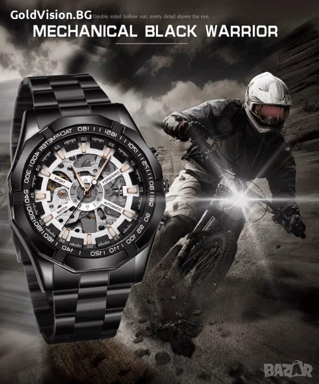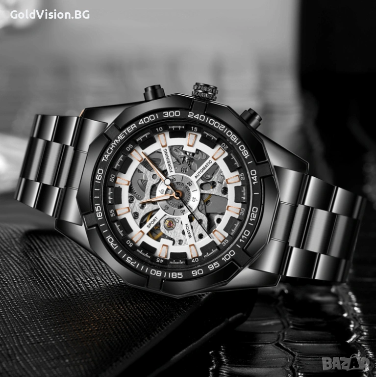 Функции: Скeлетон дисплей — видим механизъм, луминисцентни стрелки, автоматичен механизъм