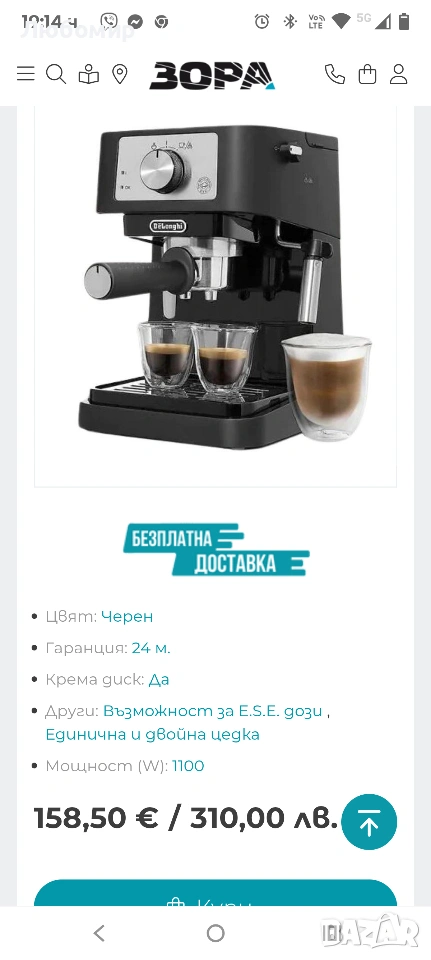 кафемашина DeLonghi EC260.BK. Изживейте удоволствието от перфектната чаша кафе, която събужда сетивата и зарежда с енергия.