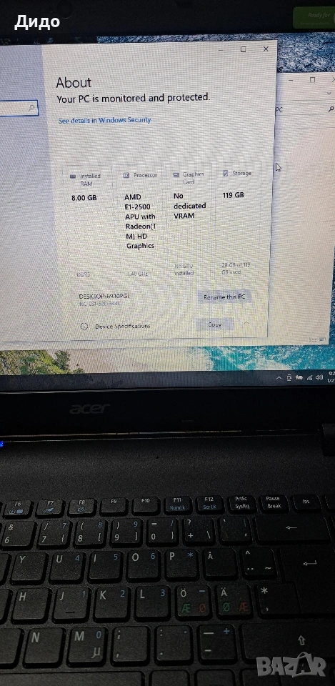 Употребяван Acer, снимка 1 - Лаптопи за дома - 53179429 Употребяван Acer, снимка 2 - Лаптопи за дома - 53179429 Употребяван Acer, снимка 3 - Лаптопи за дома - 53179429 Употребяван Acer, снимка 4 - Лаптопи за дома - 53179429 1/4