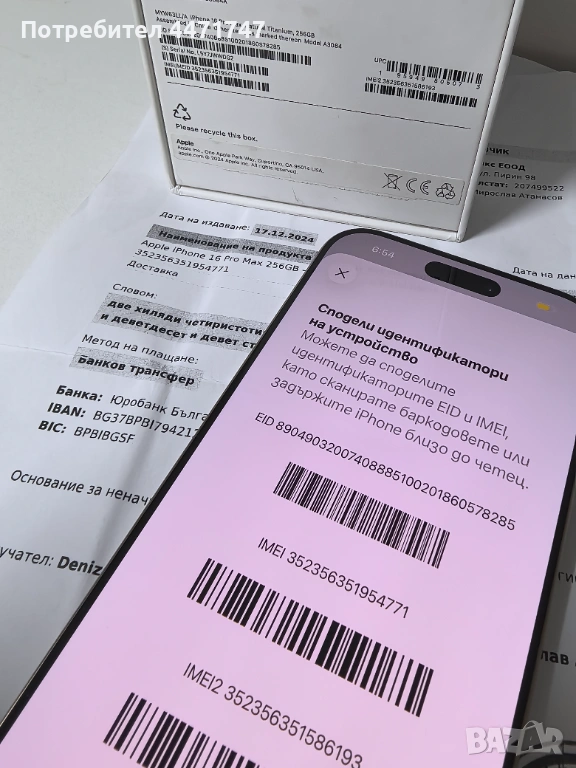 iPhone 16 Pro Max 256GB 5G Esim с Гаранция → Обява 53179494