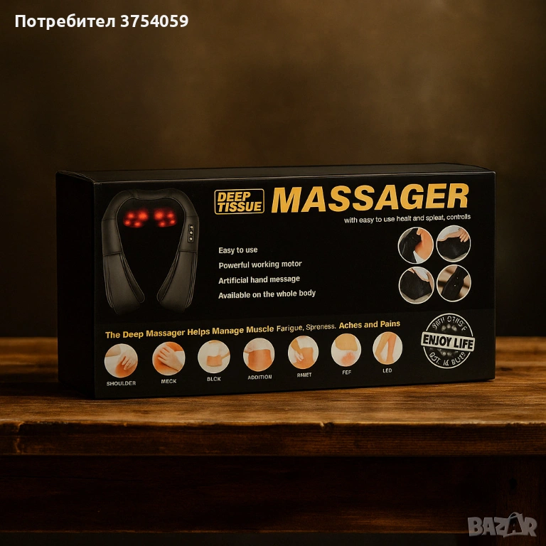 Тип: електрически шиацу масажор за шия, рамене, гръб и тяло;