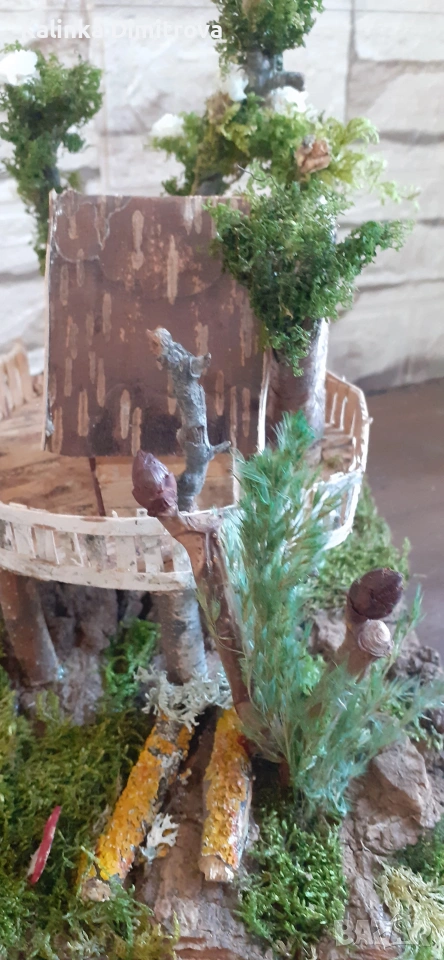 Декорацията е изработена с естествени материали-дървесна кора,брезови кора,клонки,мъх,сухи цветя.Размер 27/18/26/18см.За София може лично предаване.