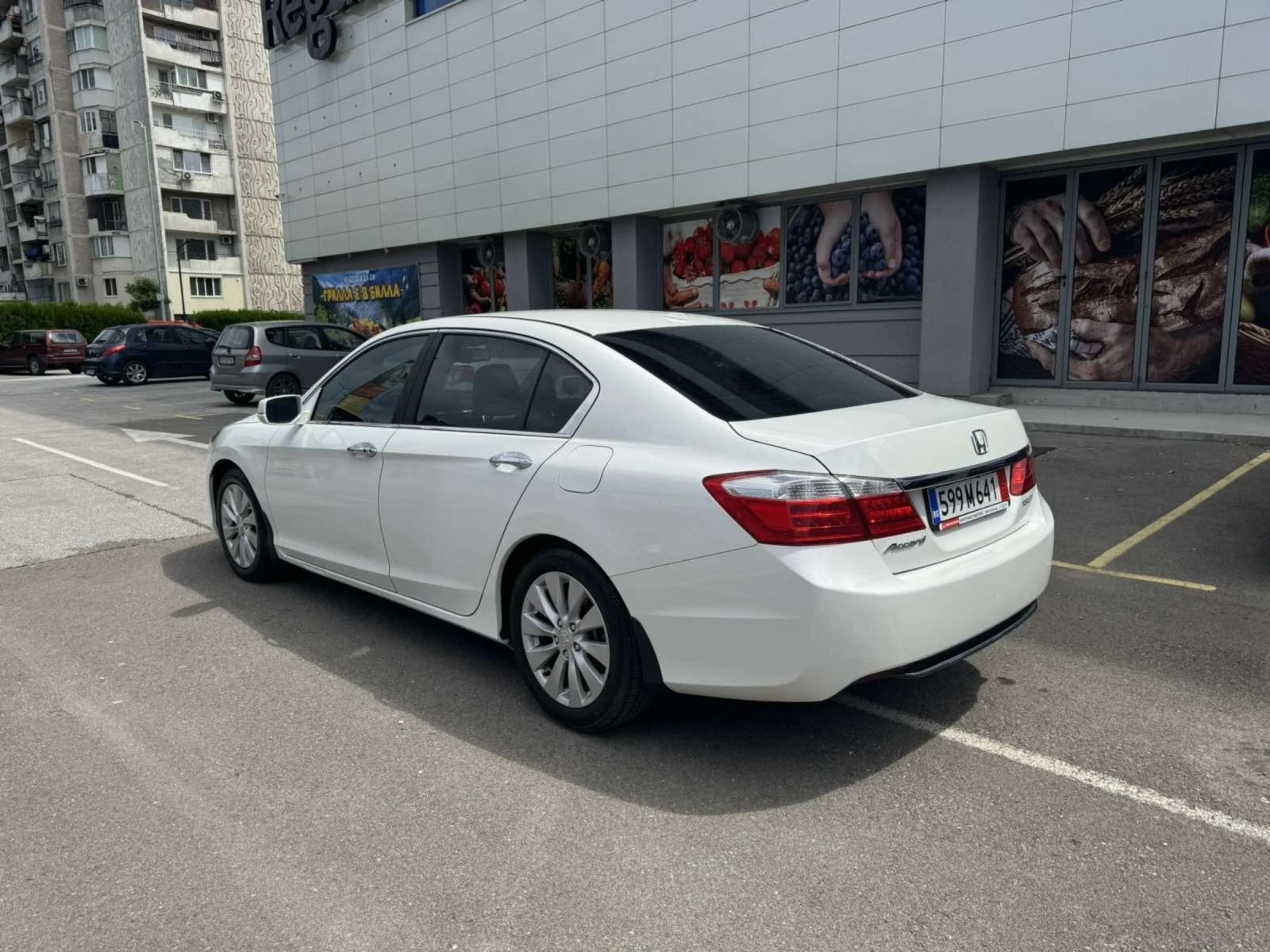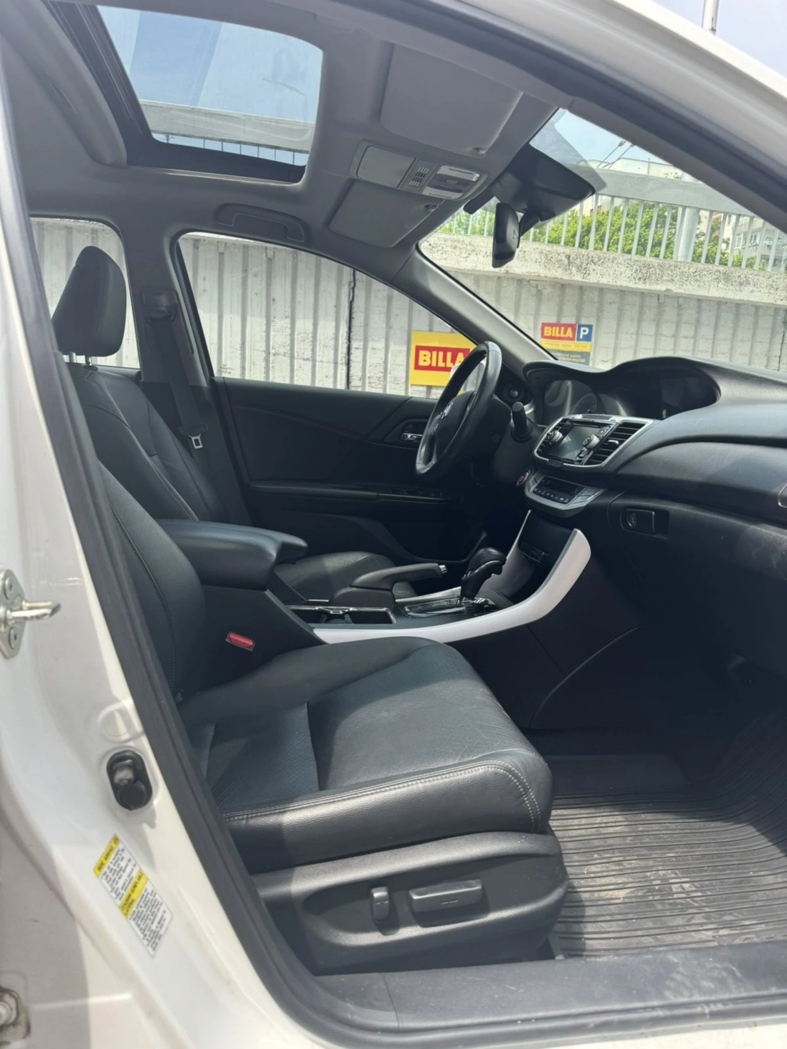 Продава се Honda Accord EX-L 2014 Продавам Honda Accord EX-L 2014, в отлично състояние надежден, икономичен и комфортен седан с богато оборудване. Основни характеристики: ? Двигател: 2. 4 i-VTEC, 185 к. с. , бензин ? Скоростна кутия: Автоматична (CVT) ? Задвижване: Предно предаване (FWD) Оборудване (EX-L пакет): ? Кожен салон перфектно запазен, с електрически регулируеми седалки ? Подгряване на предните седалки комфорт през зимата ? Електрически шибедах ? Мултимедийна система с тъчскрийн Bluetooth, USB, AUX. ? Двузонов климатроник индивидуален контрол за водача и пасажера ? Камера за заден ход и странична камера (LaneWatch) ? Круиз контрол и асистенти за безопасност ? Дневни светлини и халогени ? Безключов достъп и старт-стоп бутон ? Адаптивен автопилот и система за предупреждение при сблъсък Състояние и обслужване: ? Технически перфектен без забележки по двигателя. ? Гумите са в добро състояние Автомобилът е много икономичен и предлага комфортно и сигурно шофиране. Идеален за градски условия и дълги пътувания. Без бартери.