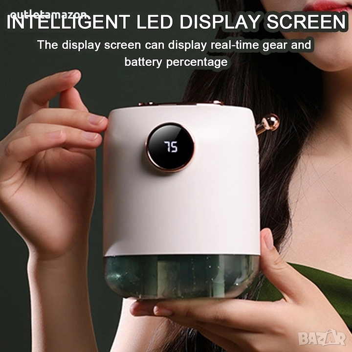 Голям капацитет: Насладете се на вашия дифузер за дълго време благодарение на резервоара с капацитет от 500 ml. LED дисплей: проверете оставащото ниво на батерията с един поглед благодарение на дисплея, разположен в горната част на високоговорителя.