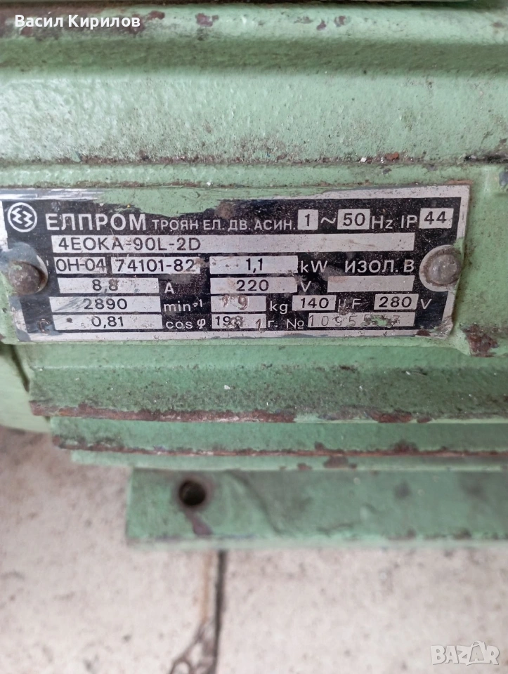 Електро двигател мотор Български 1,1кв 2860обр, снимка 1 - Електродвигатели - 53180068 Електро двигател мотор Български 1,1кв 2860обр, снимка 2 - Електродвигатели - 53180068 Електро двигател мотор Български 1,1кв 2860обр, снимка 3 - Електродвигатели - 53180068 1/3