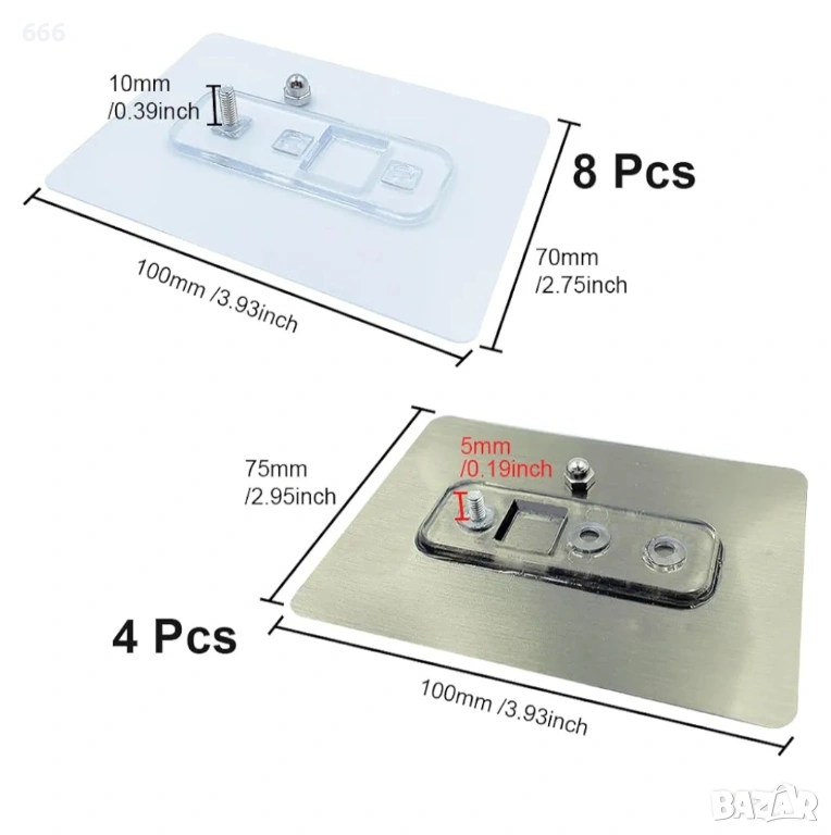 Опаковка: Ще получите 12 бр. здрави водоустойчиви безшевни винтове, 8 бр. прозрачни: пирони за стикери са 10 см * 7 см (Д * Ш), дължина на винта е 9 мм; 4 бр. сиви: пирони за стикери са 10,5 см * 7 см (Д * Ш), дължина на винта е 5 мм.