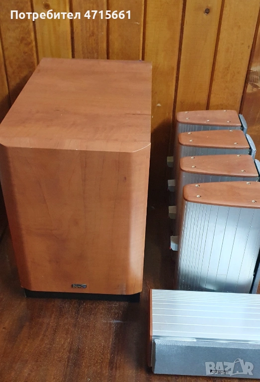 Комплект Тонколони Denon 5 броя сателити и пасивен събуфер. Всички са в отлично състояние и с много минимални козметични забележки. Нямат надраскване или ударено. Мощност 100 вата всяка. Сателитите са изработени от алуминий и дърво. Много качествени говорители в компактен дизайн.