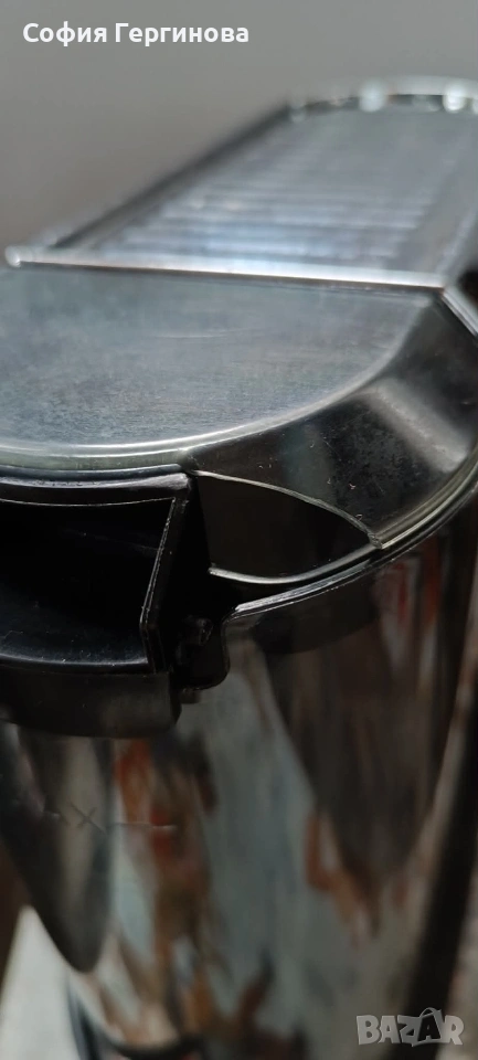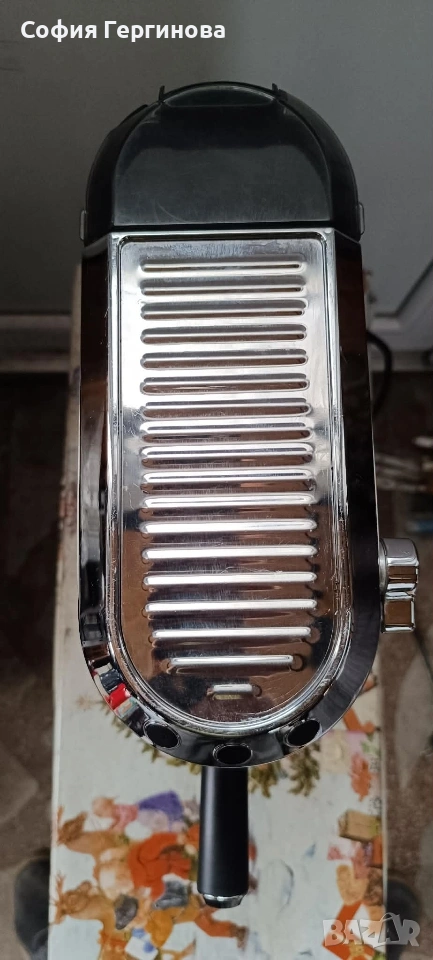 Кафемашината е напълно обслужена. Почистена е и няма отлагания от варовик. Прави много хубаво кафе с пухкав и плътен каймак. Капачето на резервоара за вода е счупено от едната страна и е видимо от снимките. Предпочитам лично предаване.