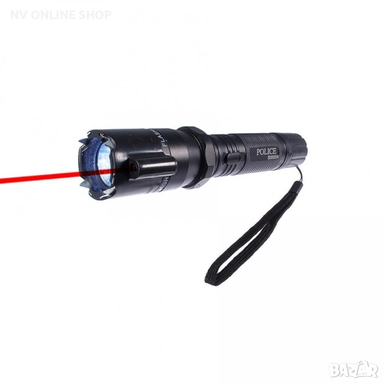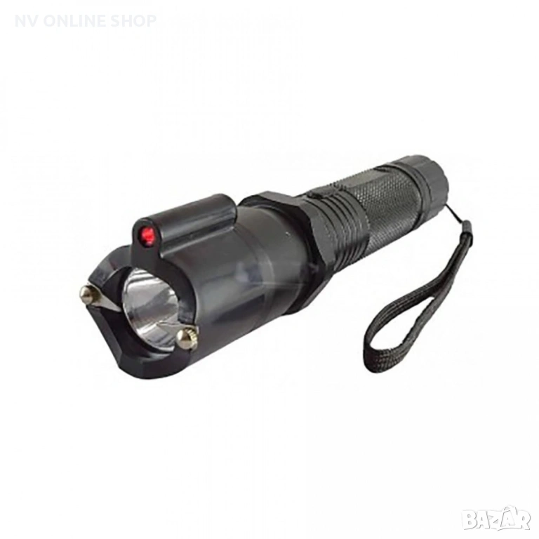 Фенер с лазер и електрошок Мощен 9000000-волтов лазерен + светкавичен зашеметяващ звук