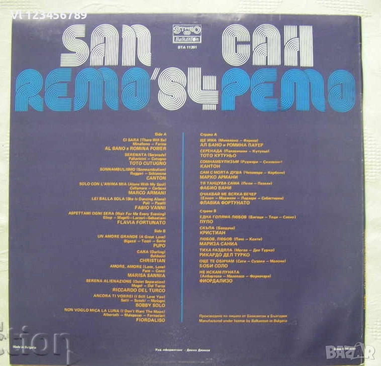 ВТА 11391 - Сан Ремо '84 → Обява 53180670