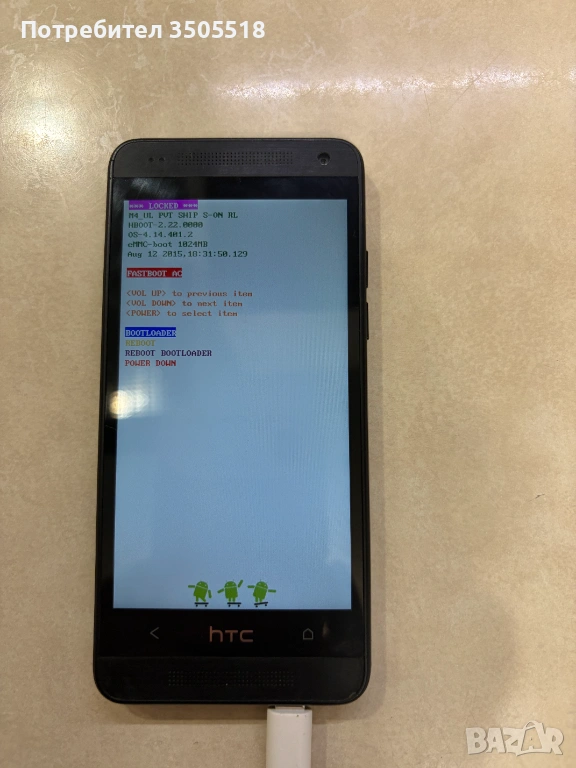 HTC One mini m4 - работи, но се включва в bootloader режим и не му работи power бутона, може да се оправи, ако имате мерак.