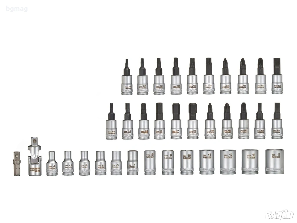 Съдържание: 13 x 6,3 мм (1/4") вложки за глухи ключове: 4 / 4,5 / 5 / 5,5 / 6 / 7 / 8 / 9 / 10 / 11 / 12 / 13 / 14 мм,