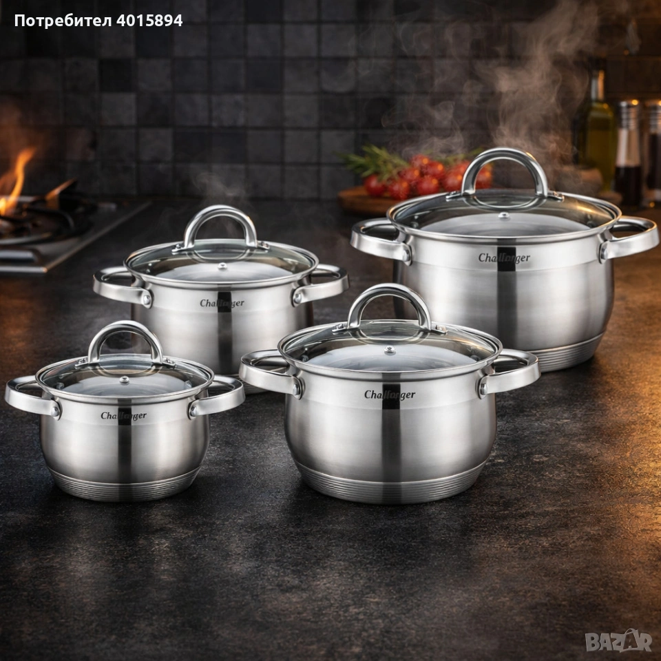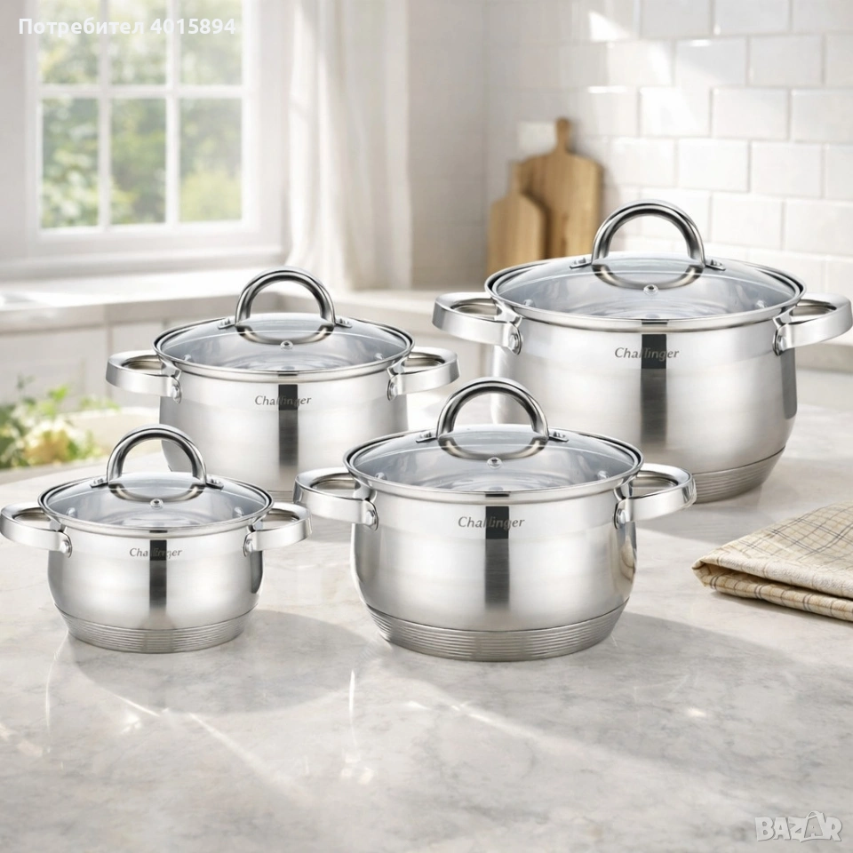 Комплект 4 тенджери от неръждаема стомана с индукционно дъно Cheffinger CF-SS8 + ПОДАРЪК Ръчен чопър, снимка 1 - Съдове за готвене - 53181255 Комплект 4 тенджери от неръждаема стомана с индукционно дъно Cheffinger CF-SS8 + ПОДАРЪК Ръчен чопър, снимка 2 - Съдове за готвене - 53181255 Комплект 4 тенджери от неръждаема стомана с индукционно дъно Cheffinger CF-SS8 + ПОДАРЪК Ръчен чопър, снимка 3 - Съдове за готвене - 53181255 Комплект 4 тенджери от неръждаема стомана с индукционно дъно Cheffinger CF-SS8 + ПОДАРЪК Ръчен чопър, снимка 4 - Съдове за готвене - 53181255 Комплект 4 тенджери от неръждаема стомана с индукционно дъно Cheffinger CF-SS8 + ПОДАРЪК Ръчен чопър, снимка 5 - Съдове за готвене - 53181255 1/5