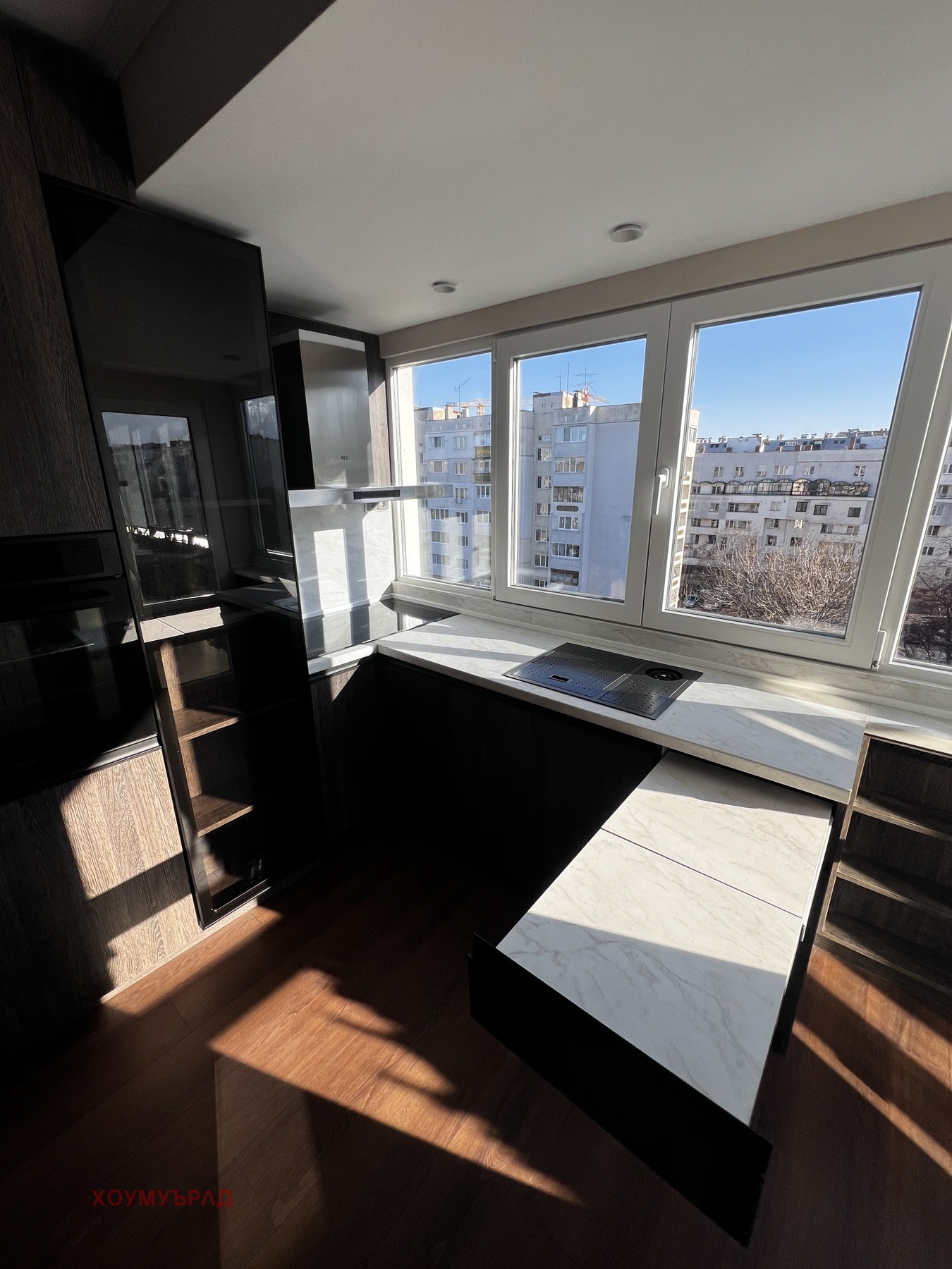 конвектомат Zanussi, миялна AEG, голям индукционен плот и абсорбатор AEG.