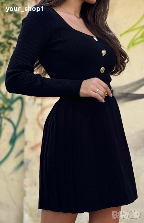 Уникална къса рокля с дълъг ръкав - финно машинно плетиво 🖤🖤🖤 Плисирана пола 🧸 Ограничени бройки → Обява 53181310