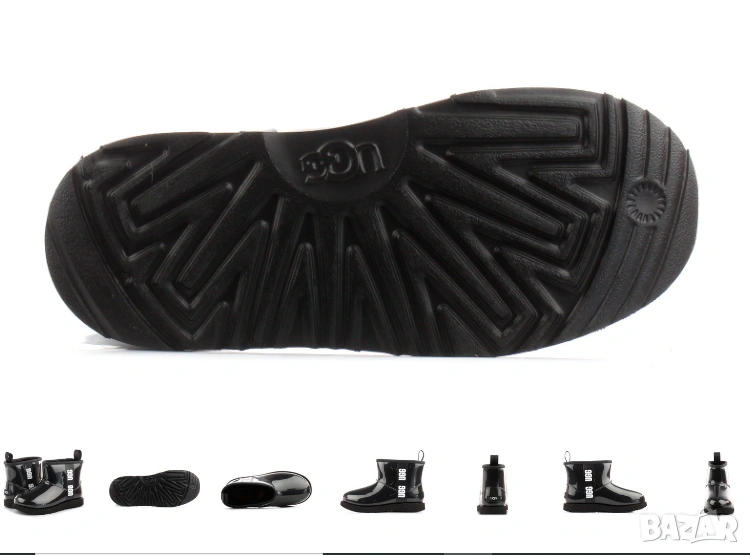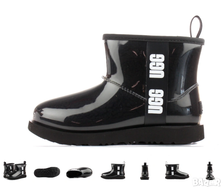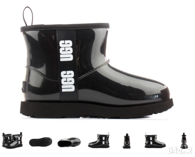 - Дизайн: Прозрачната горна част позволява да се вижда емблематичната подплата от овча кожа, което придава модерен и уникален външен вид