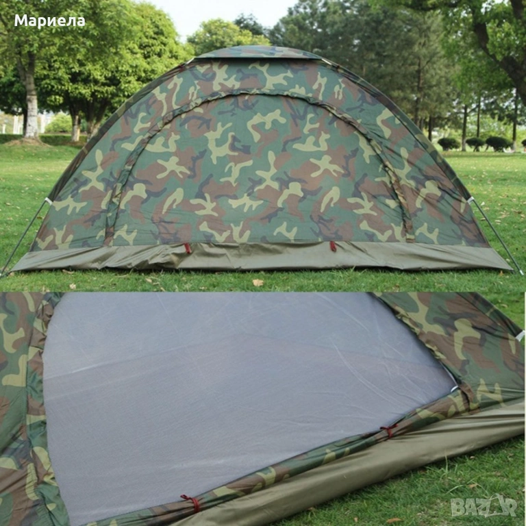 Камуфлажна четириместна палатка, идеална за къмпинг, излед, почивка на планина или море.