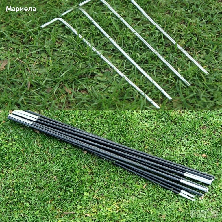 * Палатката е изработена от висококачествен полиестер и се побира в удобна чанта с цип. Разпъва се от две пръчки от фибростъкло.