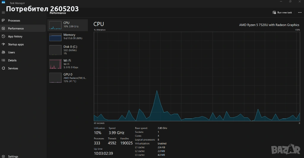 - SSD: 512GB NVMe (Windows зарежда за секунди)