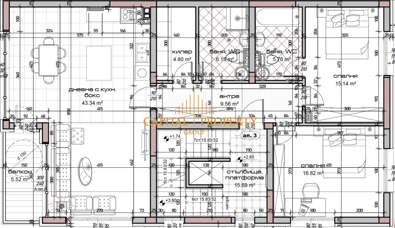 Capital Property Group продава двустаен апартамент със обща застроена площ от 97 м2 в новострояща се жилищна сграда в м-ст Зеленика, гр. Варна.