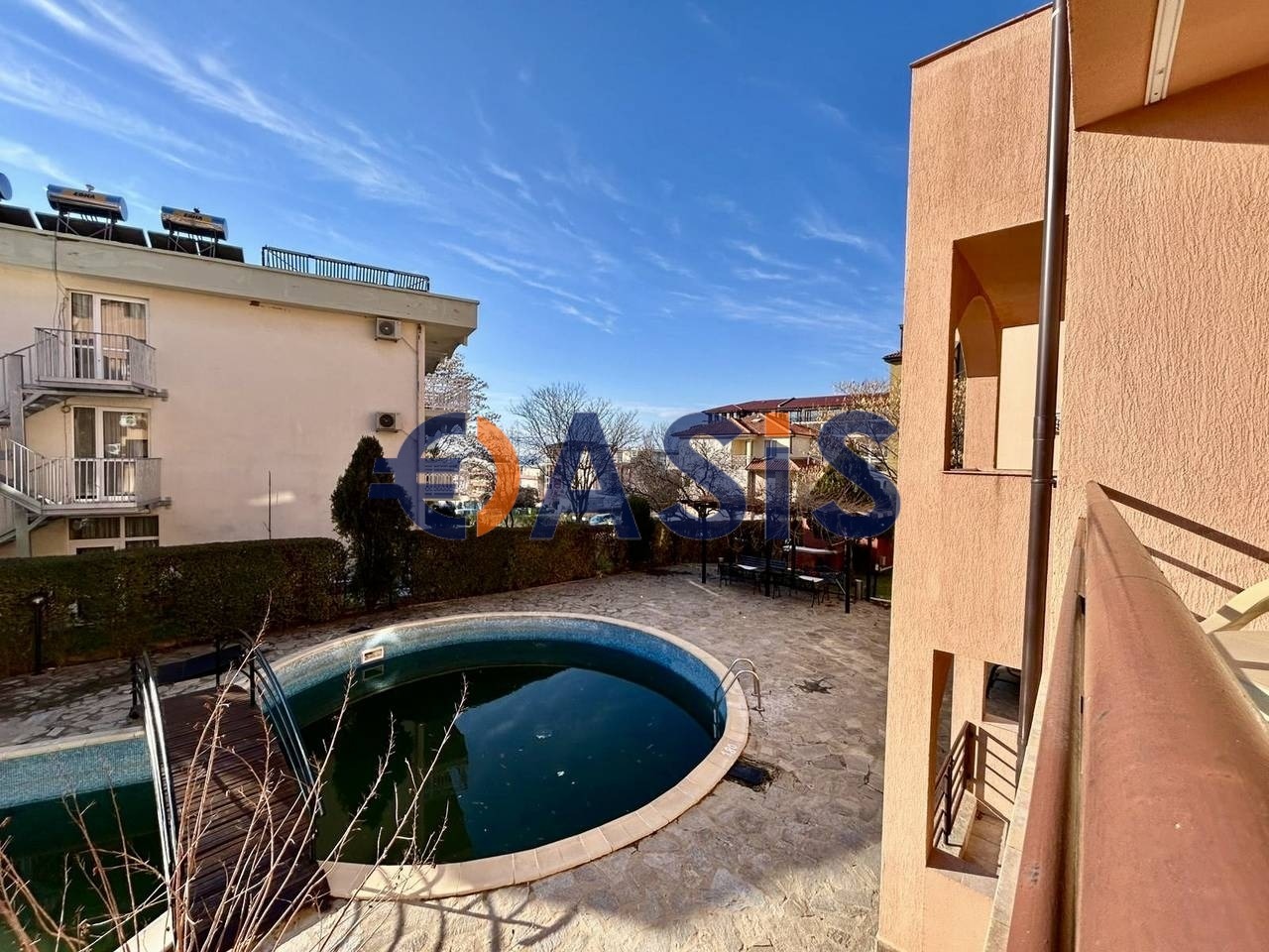 Кухненският бокс разполага с цялото необходимо оборудване: печка, микровълнова печка, тостер, хладилник, пералня, електрическа кана. Банята разполага с вана. В комплекс ' 0 ' на Ваше разположение е закрита територия с голям басейн и детска зона