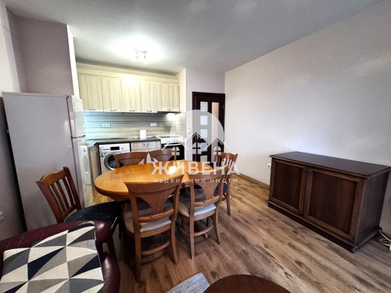 Агенция Живена отдава под наем обзаведен 2-стаен апартамент, разположен на 3-ти жилищен етаж в нова 5-етажна тухлена сграда (от 2022 г.) с асансьор и контролиран достъп. Намира се в централна част на гр. Варна, на метри от Колхозен пазар, различни магазини и услуги. Жилището е с чиста площ - 65 кв.м и се състои от: входно антре, просторна дневна с кухня, спалня, баня с тоалетна и прозорец за проветрение, тераса с излаз от двете стаи. Разполага с най-необходимите електроуреди: хладилник с фризер, аспиратор, готварска печка, пералня. Отоплението е с климатици в двете стаи. Отдава се за дългосрочен период, с предплащане на един депозит. Без домашни любимци. За повече информация и огледи, моля, обадете се на посочените телефони за връзка. Оферта 7659