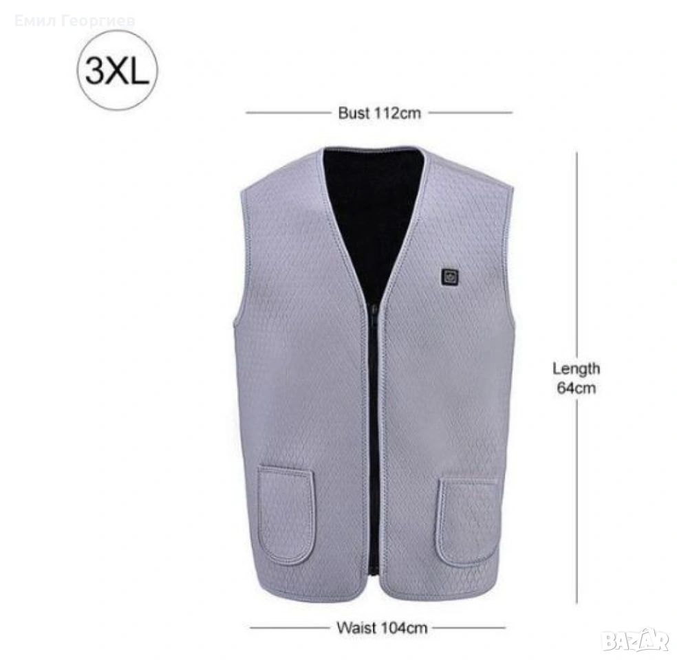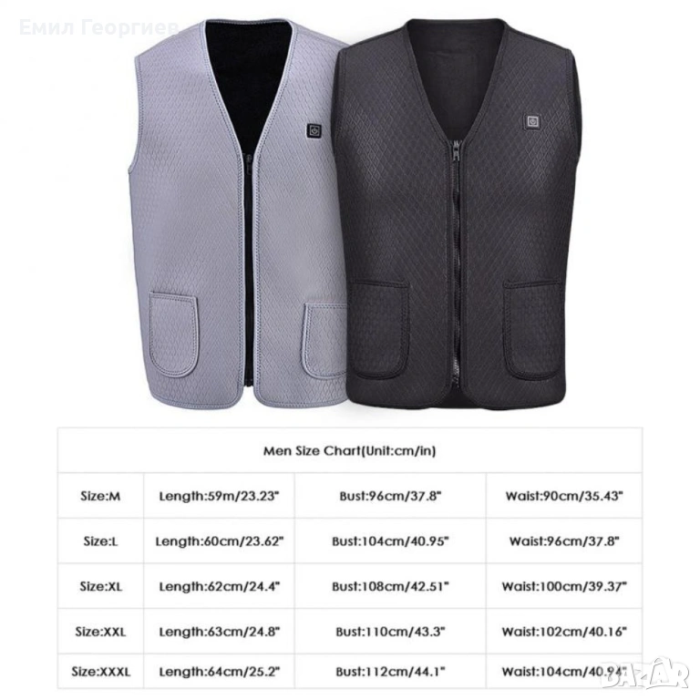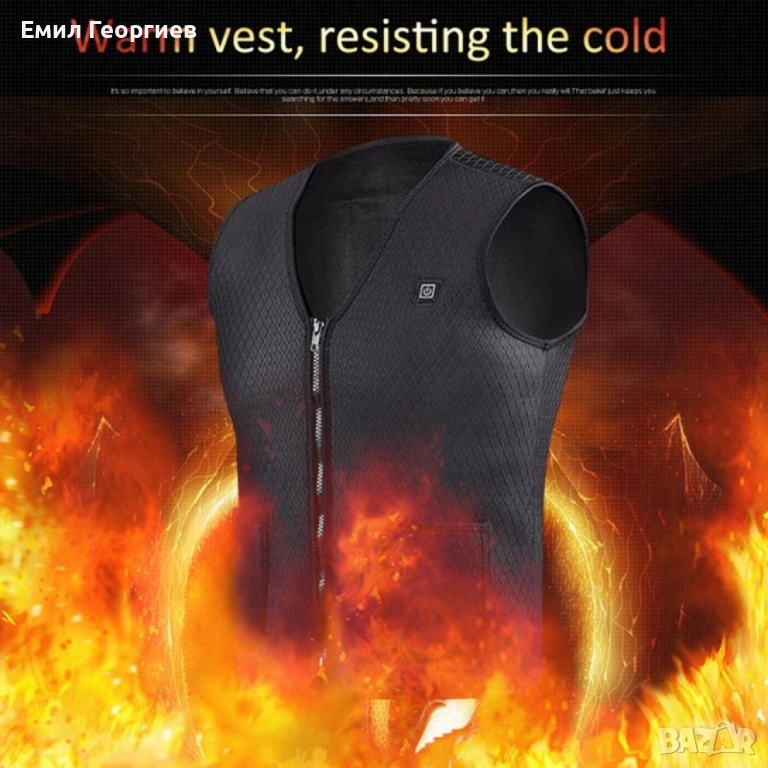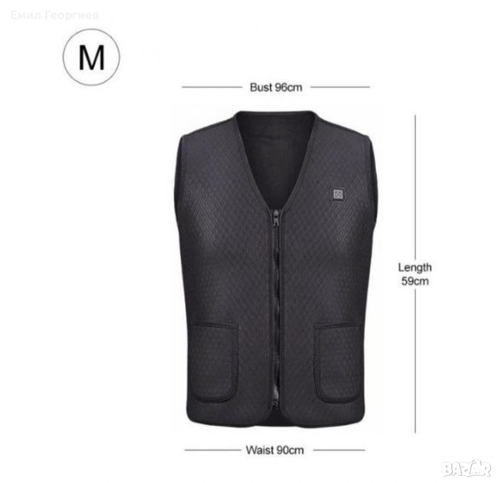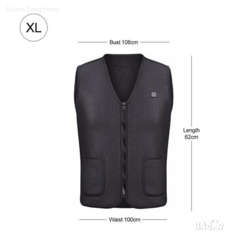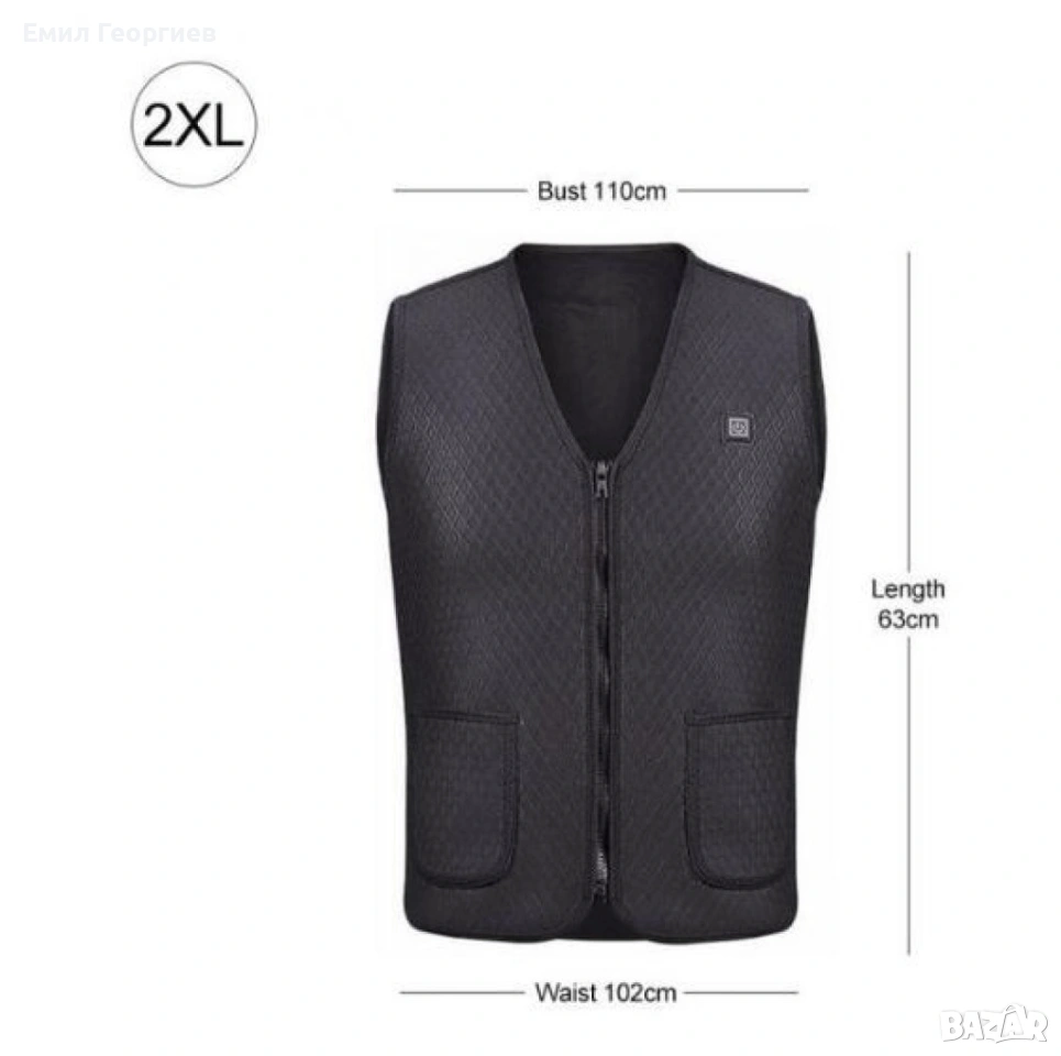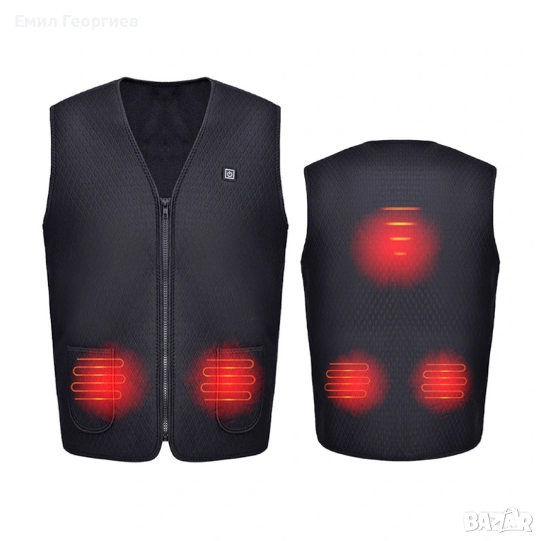 Унисекс електрически термичен елек за зимния период с USB свързаност/Ефективно предпазва от студ през зимните месеци; USB порт за свързване на захранващата банка; 4 режима на подгряване с различен интензитет; Мигащ светлинен индикатор - автоматично отопление; Червена светлина - ръчно нагряване, висока температура; Бяла светлина - средна температура; Синя светлина - ниска температура; Подходящ за пране на температура под 30 градуса; Подходящ за носене и от мъже и от жени; Цвят: черен; Размер: M, L, XL, 2XL, 3XL;