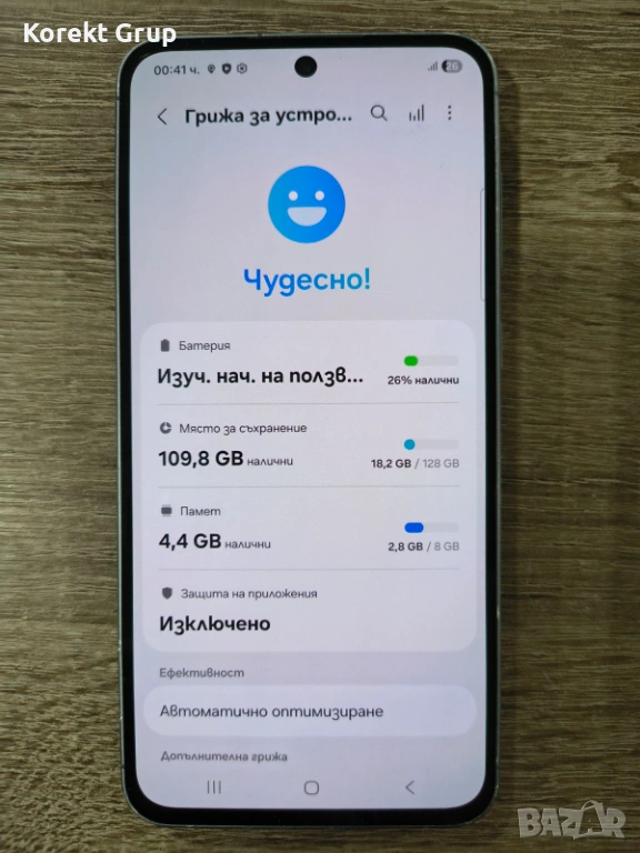 Samsung A56 5G 128gb/8gb рам памет.Има леки следи от употреба гърба е леко износен така и по дисплея има леки драскотини може да се види на снимките леки забежки по ръбовете на телефона.Изпращаме с еконт с преглед и тест..