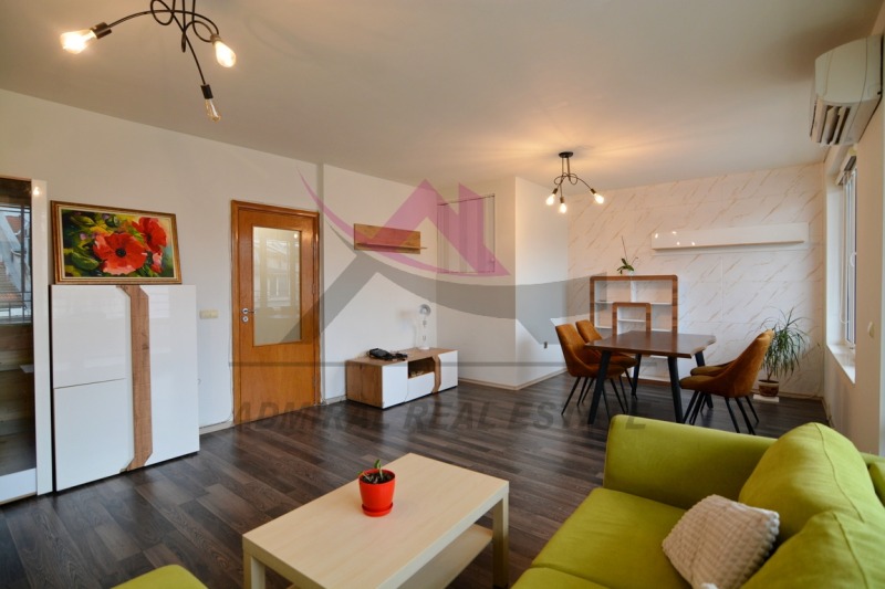 Агенция за недвижими имоти Адмирал Риъл Естейт отдава под наем Напълно обзаведен МЕЗОНЕТ в района на Лятно Кино Тракия, гр. Варна. Имотът е много просторен, слънчев и топъл. Излъчва хармония и усещане за Дом. Пространствата са оптимално усвоени за максимален комфорт и функционалност. Състои се от: Първо ниво - кухня с трапезария, с всички необходими електоуреди за едно домакинство! Висок клас и енергоспестяващи. Слънчев и просторен хол, с красив цветен дезайн, остъклена тераса. Второ ниво - уютна спалня, втора спалня обособена като детска стая, баня, тоалетна, открита тераса. Апартаментът има чудесна гледа, към центъра на града! Имотът е комфортен и функционален! Съчетание приятна атмосфера, красиви цветове и практичност! Има възможност за наемане на Подземно Паркомясто!! Локацията е чудесна, в сърцето на града! В близост да всички пътни артерии на града, морската градина, кулурни забележителности, администрация, развлекателни заведения, паркове и др. Охлаждането и отоплението е с КЛИМАТИК. Референтен номер: 33902. За повече информация относно този и други имоти можете да ни потърсите на посочените телефони: