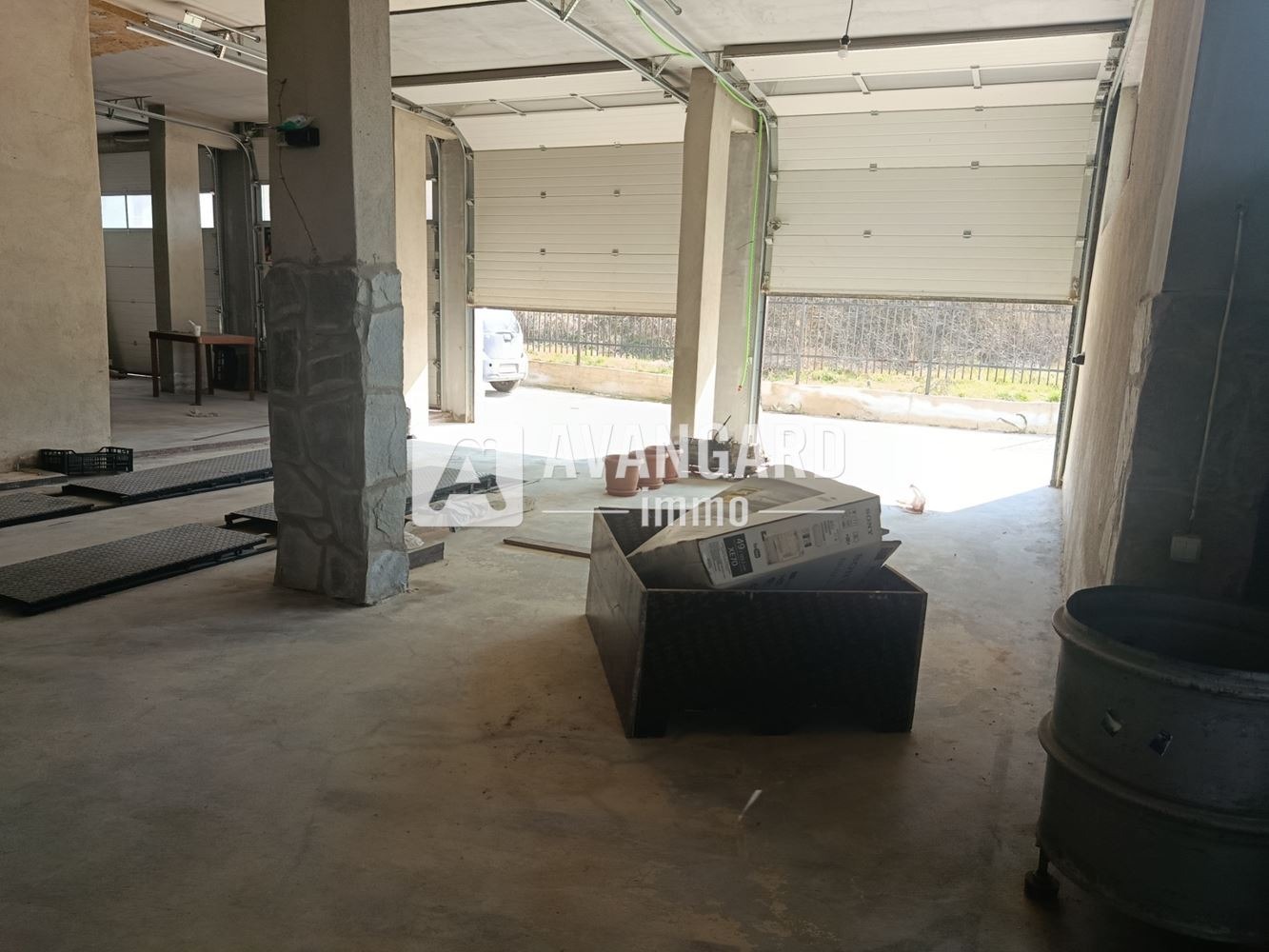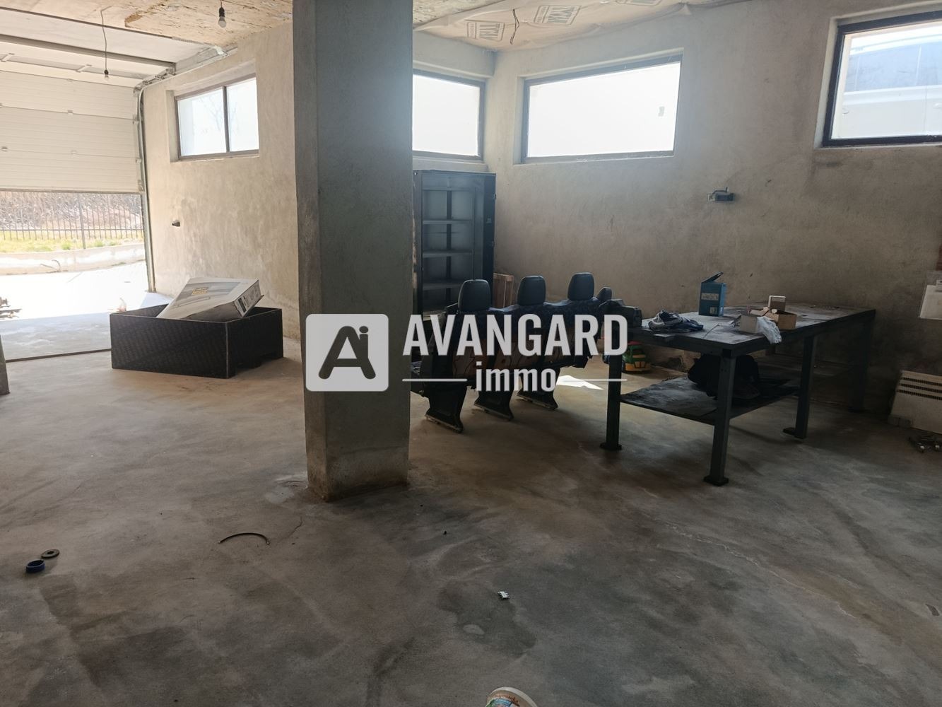 На разположение са 4 висококачествени сервизни врати, през които безпроблемно преминават бусове и малки камиони сериозно предимство за дейности, свързани с доставки, товаро-разтоварни операции и обслужване на клиенти. Имотът разполага със самостоятелен вход с приемно помещение, вътрешен офис, баня със съблекалня и отделна тоалетна, което позволява ясно разделение между работна, административна и обслужваща зона.