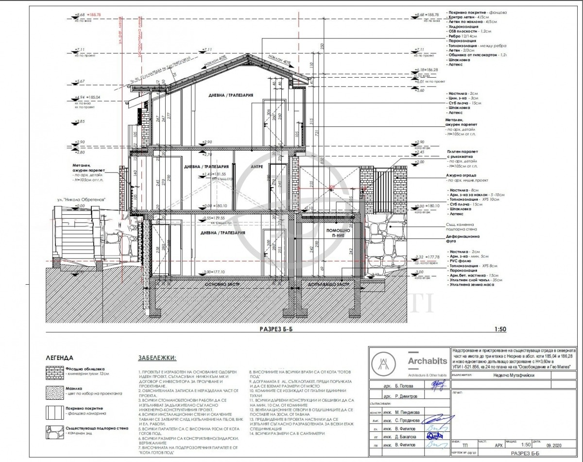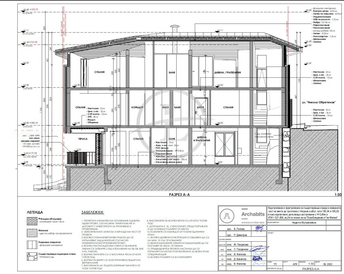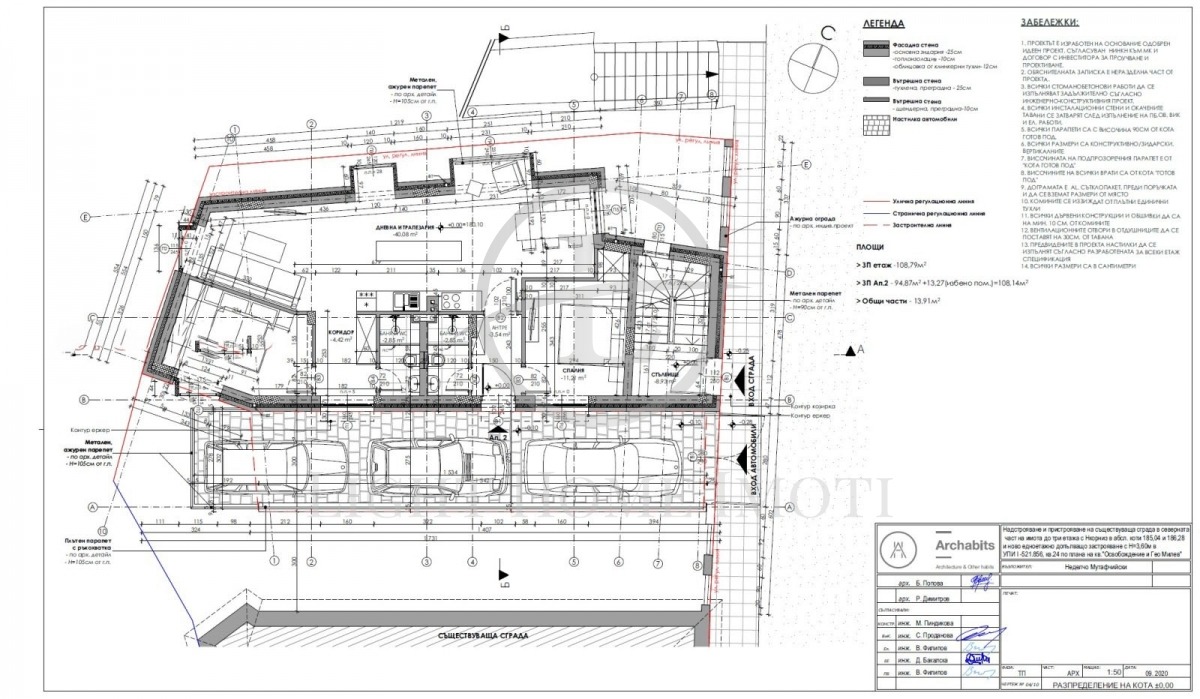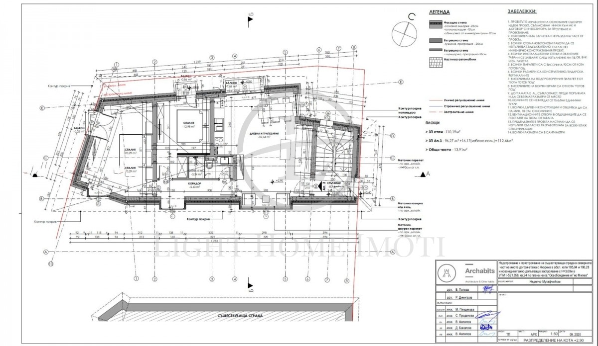 - Площ: РЗП къща - 347 кв.м върху къща с парцел от 222 кв.м