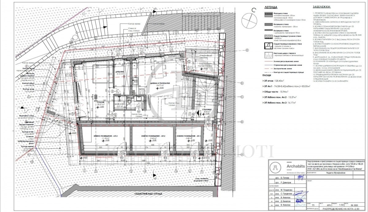 - Проектът позволява два от етажите да бъдат разделени на 4 апартамента по 50.5 кв.м