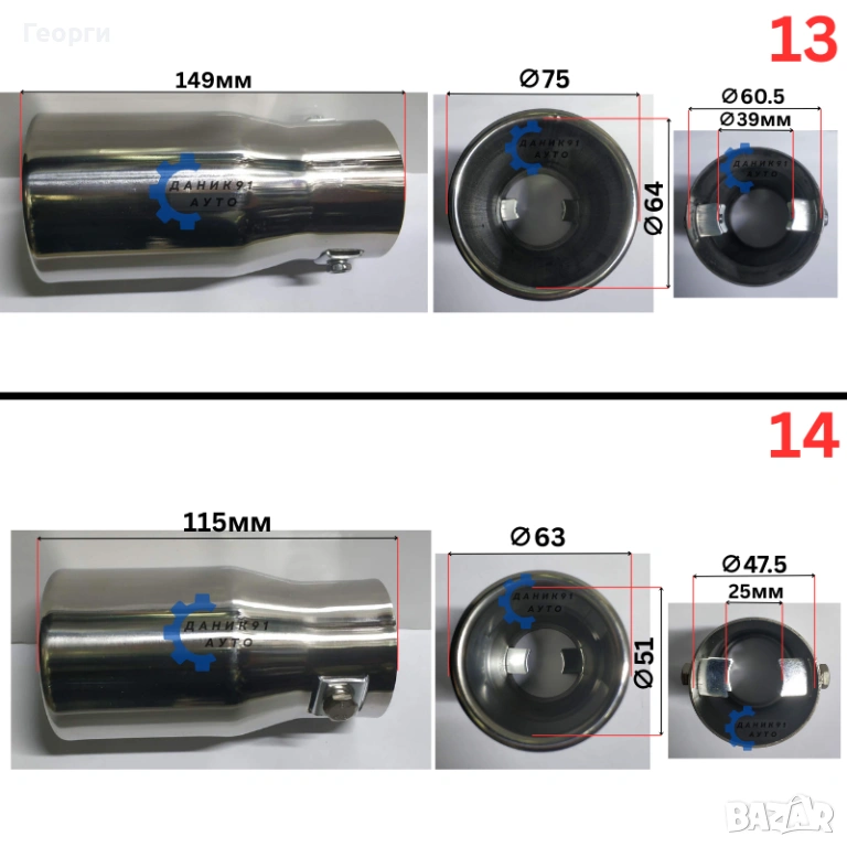 13. Накрайник за ауспух Ф60,5 х Ф75 х 149мм - 12,50 лв. ( 6,39 € )